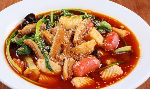 3. 火锅式吃法:将麻辣烫食材放入滚烫的麻辣烫锅中煮熟,捞出后放入碗中,加入麻辣烫底料和“娱乐吃瓜酱”,即可享用。